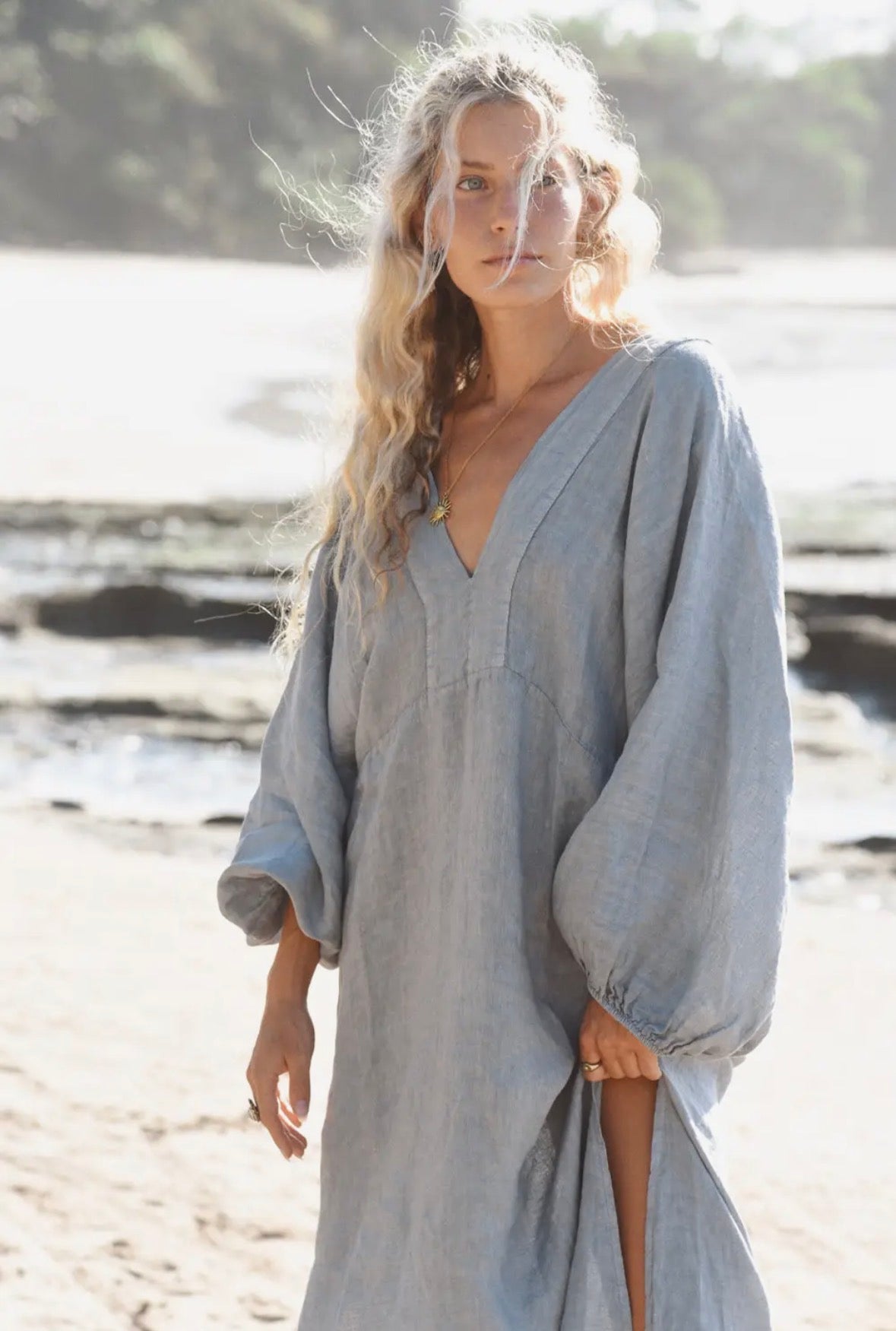 With a plunging low back, billowy sleeves, side slits and a detailed v-neck front, the Siena Dress is crafted with care for the ultimate laid back beautiful look.