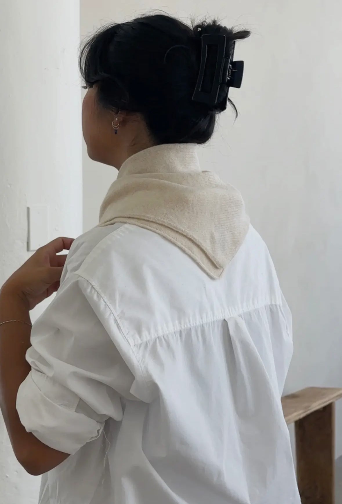 Elevate your wardrobe with the Cashmere Bandana, an elegant revival of the classic square kerchief. The beauty of this super soft accessory lies in its adaptability. Styling options are endless, whether worn as a neck scarf or styled as a head bandana. It's the perfect addition to any outfit and makes a timeless gift for loved ones.